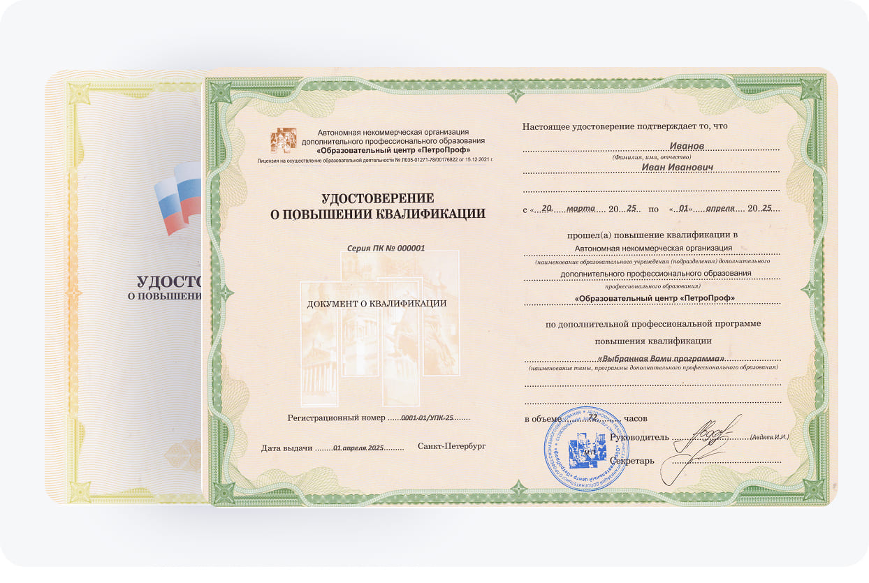 Учебный центр «ПетроПроф» имеет лицензию на осуществление образовательной деятельности, выданную соответствующим органом Российской Федерации. Наши преподаватели являются высококвалифицированными специалистами с большим опытом практической работы в данной отрасли. Обучение проходит в удобном онлайн-формате, что позволяет нашим студентам учиться в удобное для себя время и месте.